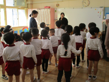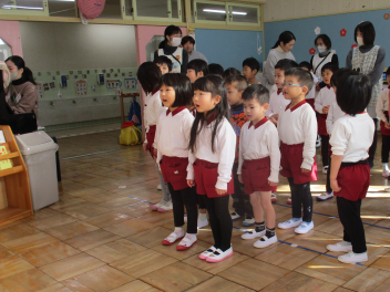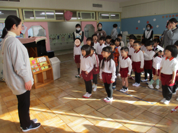 全園児で、与進幼稚園の園歌を3番まで歌いました