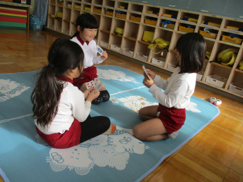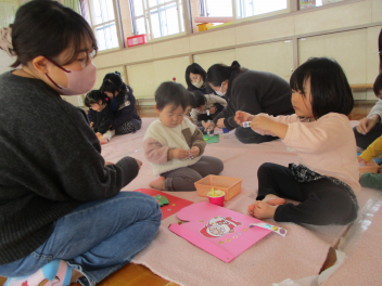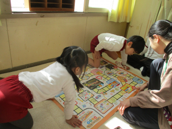 絵合わせやコマ、すごろく、カルタ、トランプなどで、じっくり遊ぶ姿も見られました遊びを通して、図や文字、数字への興味が育まれていくといいなと思いますfrown