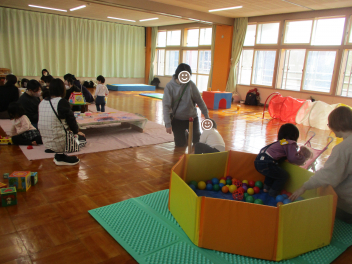 トンネル、マットなどを並べたサーキットやボールプールで、体を動かして遊ぶ子もいました