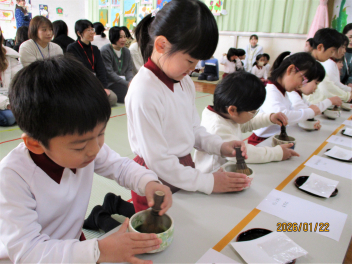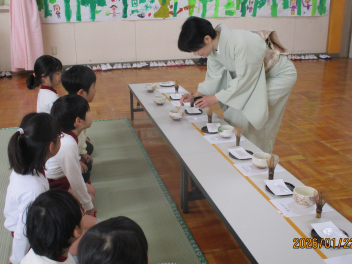 • 茶道教室の先生を講師に招き、年長さんが親子でお茶会を行いました