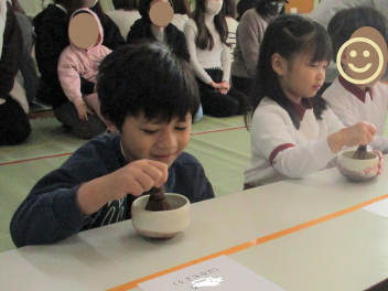 保護者の方が立ててくれたお茶がおいしくて、全部飲むことができました