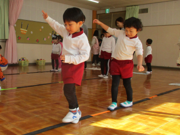 今回から参加の年少さんも、先生をよ~く見ながら真似をしていました