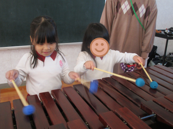大きなマリンバに、子供たちも興味津々wink