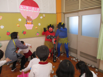 びっくりして固まってしまう子もいましたが、勇気を出して『鬼は~そと