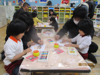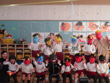 今日を迎えるまでに、どの学年も鬼のお面や枡をつくり、遊びを通して節分の行事に親しんできましたsad