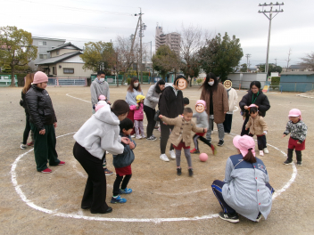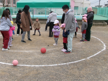 親子で転がしドッジボールを楽しみました