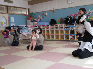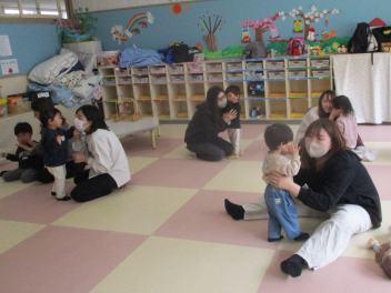 歌を聞いてもらったり、親子でたっぷり触れ合い遊びを楽しんだりしましたsmiley