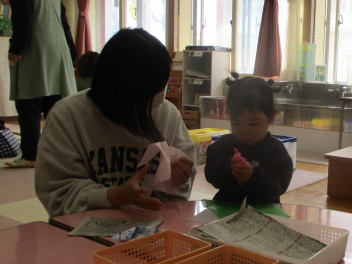 おはながみを丸めたり・・・