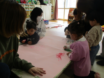 新しいクレパスの登場で、おえかきコーナーが大人気