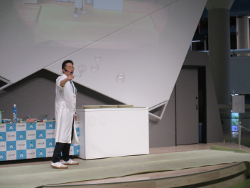 サイエンスショーでは、シャボン玉を使ったいろいろな実験を見せてもらいましたfrown