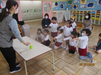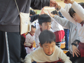 年中さん・年少さんが、もうすぐ卒園してしまう年長さんのために、何か楽しことを考えてくれたようですcheeky