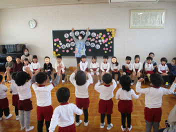 年中さん・年少さんが合同で、歌もプレゼントしてくれました