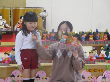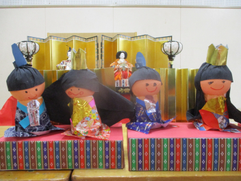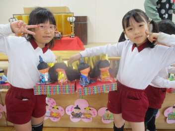 それぞれの学年が工夫してつくった雛人形も、みんなで見合いました