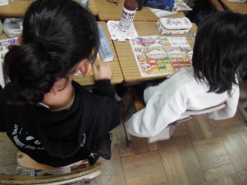 • 1年生の図画工作科では、初めて絵の具を使って絵を描きました。