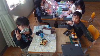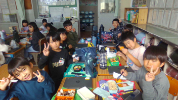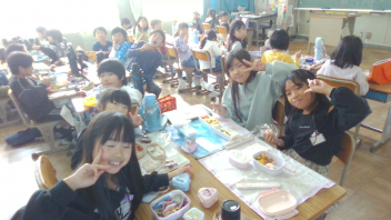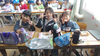 • 今日はチャレンジ弁当の日でした。お弁当にいれたいものを決めて、計画を立てて作りました。友達のお弁当を見合って、楽しみながらお弁当を食べることができました。