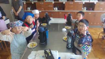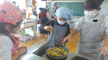• 昨日ぐっと学級では、さつまいも料理を作りました。砂糖とバターで炒め、おいしくいただきましたsmiley