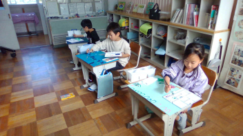 また、おはじきゲームを通して、アルファベットや野菜、果物の英語での言い方に慣れ親しみました。