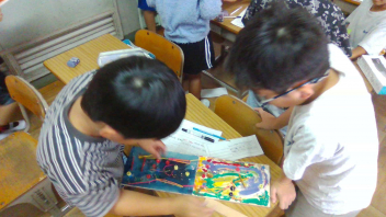 鑑賞が終わった後は、友達の作品とくっつけてコースを楽しむ姿も見られました。