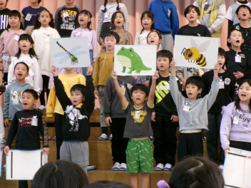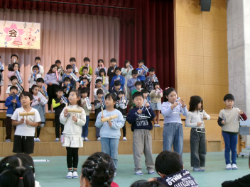 • 3年生は「よろこびの歌」「ゆかいな木きん」「happy song」の3曲の発表をしました。