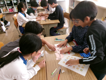 •  図画工作科の学習で、すきまテープとモールを使って、「すきまちゃん」という生き物を作りました。