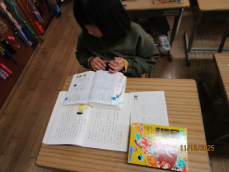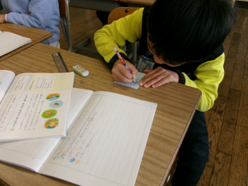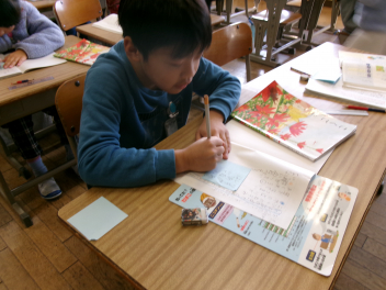 「カード」、「目をかがやかせる」などを調べました。意味が分かるとすっきりした顔になりました。