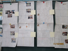 •  生活科での町探検を新聞にまとめました。見たり聞いたりしたことをお店ごとに写真やイラストを入れてまとめました。