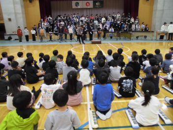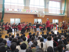 • 昼休み、体育館にて雄踏吹奏楽団の皆様をお招きし、「ミニコンサート」を開催しました。 一足早いクリスマスソングや、地元でおなじみの雄踏音頭など、迫力ある生演奏をご披露いただきました。