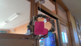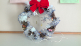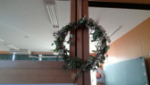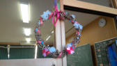 休み時間や昼休みに飾り付けをしています。クラスごとにいろいろなリースが作られています。