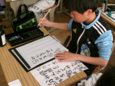 以前、国語の授業で考えた短歌を細筆を使って書きました。