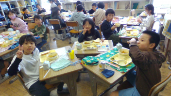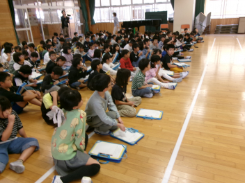 他の学級の子供たちにも見てもらいました。拍手係もいて盛り上げていました。