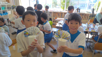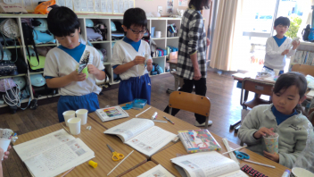 今日は、実際に教科書をよく確かめながら紙コップ花火を作りました。何度も教科書を読み返し、上手に作ることができました。