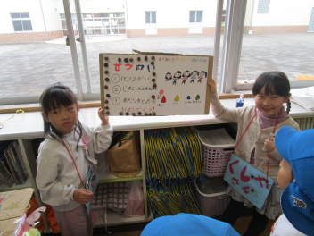 お店の準備では、園児たちが来てくれるからと、看板やルールを分かりやすくすることを心がけました。