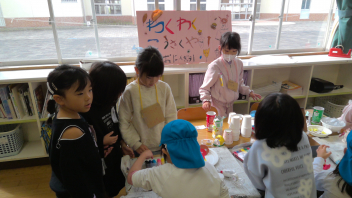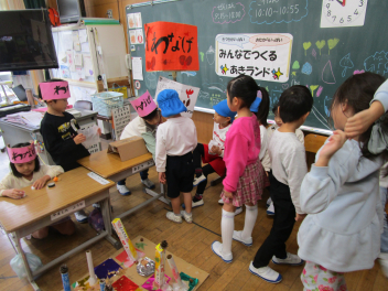 教室には、「いらっしゃいませ~」「楽しいよ~」の声が響いていました。みんな笑顔でした。