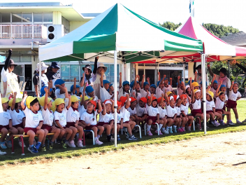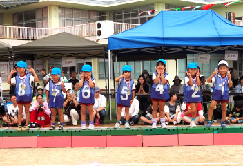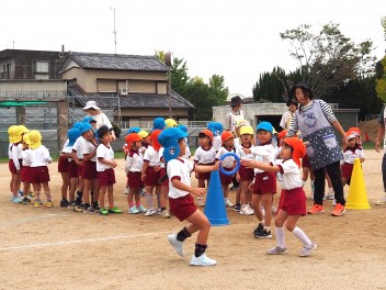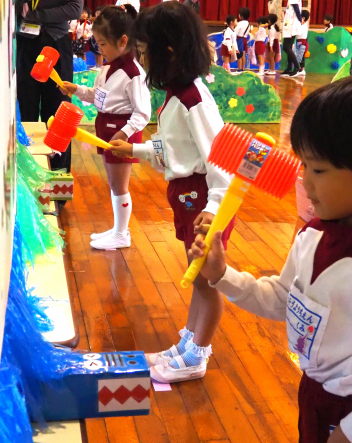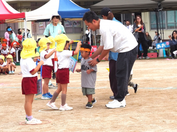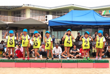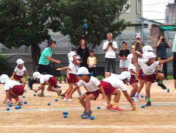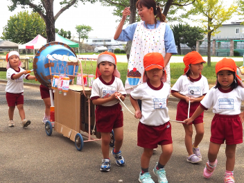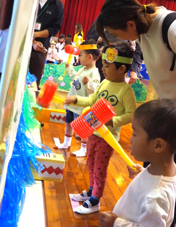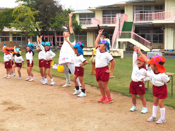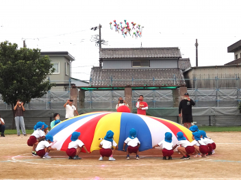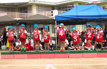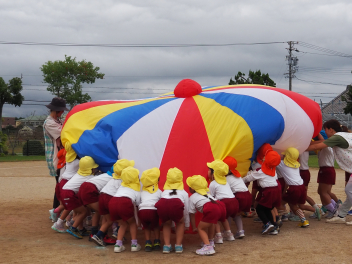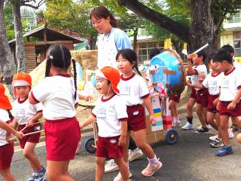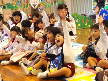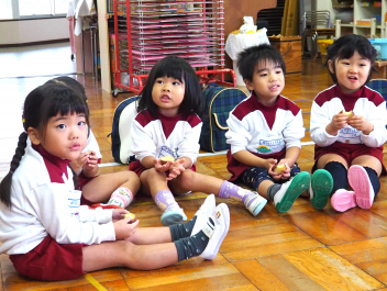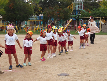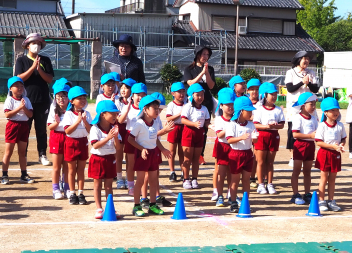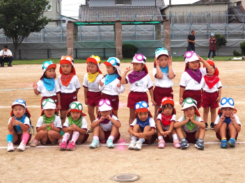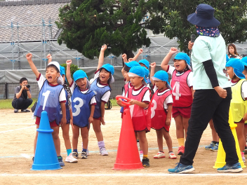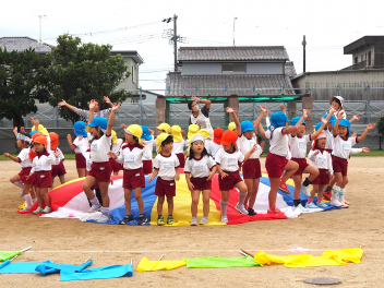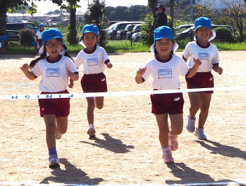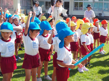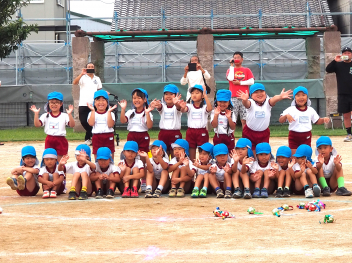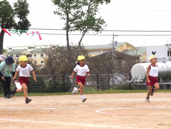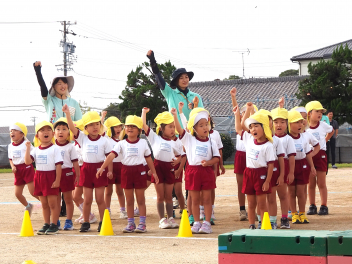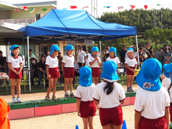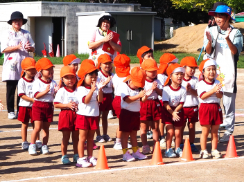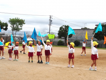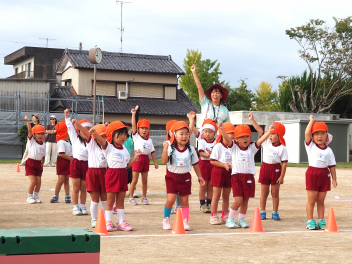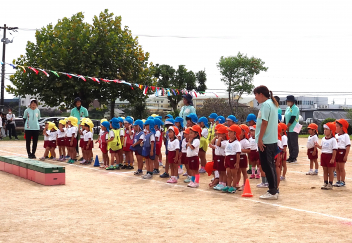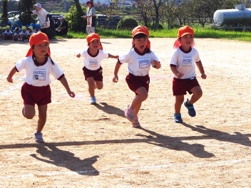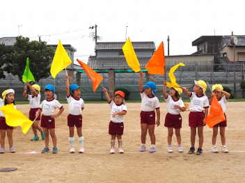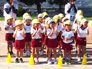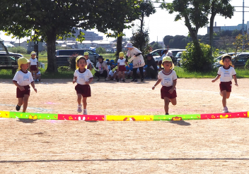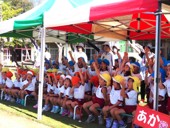 あかぐみさんは初めての運動会を、先生やお友達と体を動かして楽しむことができました。きいぐみさんは、いろいろな運動遊びに興味をもって、友達と一緒にのびのびと体を動かして遊ぶ楽しさを味わうことができました。あおぐみさんは、自分の力を最後まで発揮して、友達と競い合ったり力を合わせたりすることができました。どの学年も、運動会の取り組みを通して、心と体がたくましくなったように感じます。