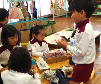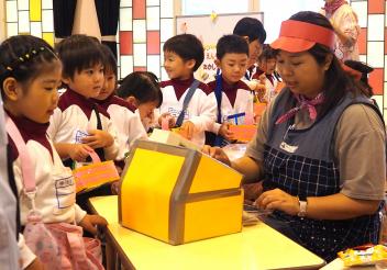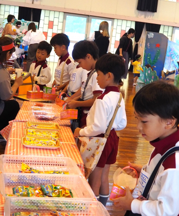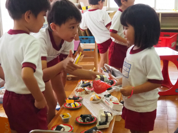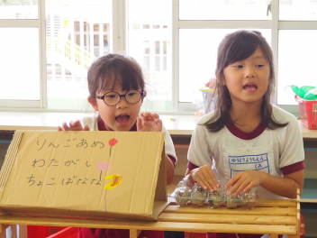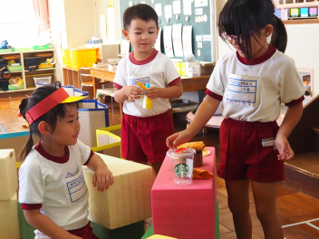 給食の後に「いらっしゃいませ~」と、「あおぐみのお店屋さん」がオープンしましたwink