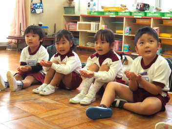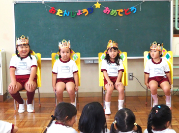 今日は10月生まれの誕生会でした 4人のお友達おめでとう
