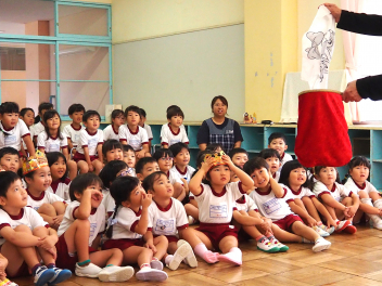 今回の誕生会のゲストは、「マジックひよこ」さんでした。次から次へと繰り広げられる、不思議なマジックに子供たちは釘付けでした