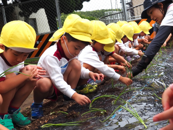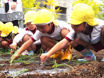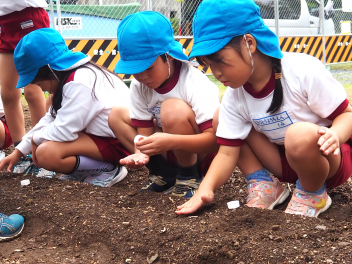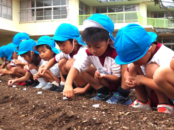 •  雨天のために延期していた「大根の種まき」と「玉ねぎの苗植え」を行いました。