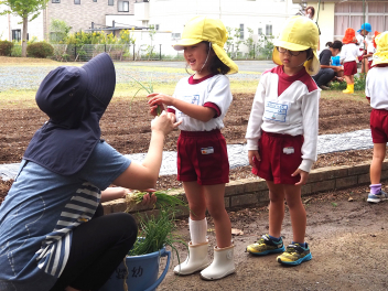 今回は畑の先生の代わりに、園の先生がやり方を教えてくれました!