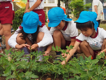 あおぐみさんは「ピーナッツ」の草取りも頑張ってくれました。収穫が待ち遠しいですねfrown