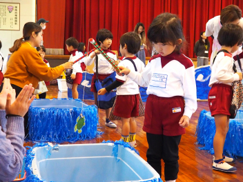 憧れのあおぐみさんから「旗」を借りて、緊張している子も…