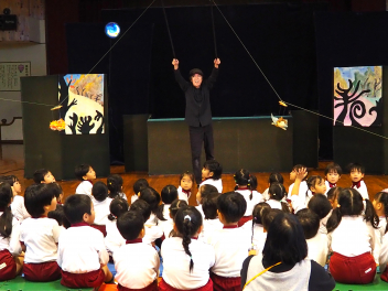 いよいよ人形劇団「あっけらかん」さんによる、観劇会のスタートです