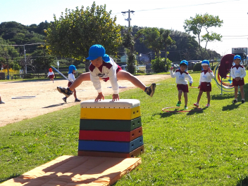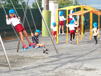 広い園庭にみんな大喜びcheeky  一緒にリレーをしたり運動遊具で遊んだりしましたよ!