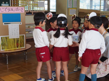 遊具で遊んだ後は、一年生の生活科の授業に参加させていただきました。