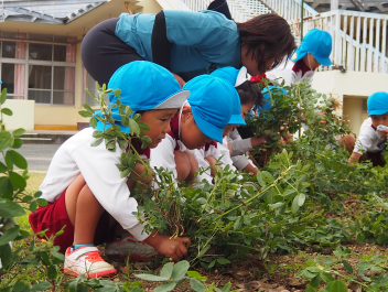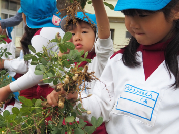 •  今日、あおぐみさんが「ピーナッツ」の収穫を行いました。
