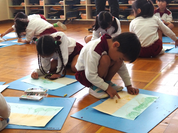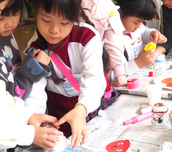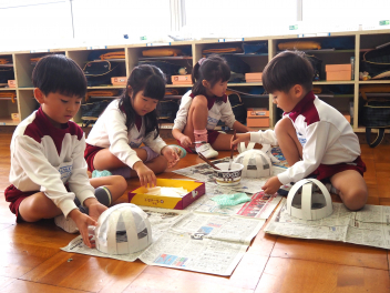 きいぐみさんが、丁寧に絵の具で色を塗っていました