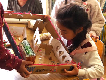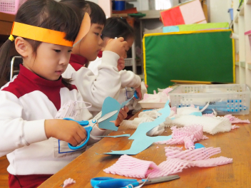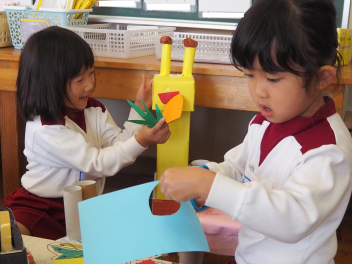 ハサミの使い方にも慣れ、遊びに必要なものをつくって楽しんでいます