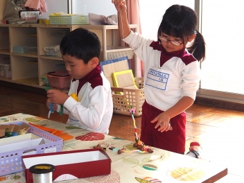 一人一人が「今日はこれをして遊びたいな!」という、目的意識をもって遊びに取り組む姿が見られるようになってきました。そして、発表会に向けての、表現遊びや楽器遊びなども盛り上がってきましたよ