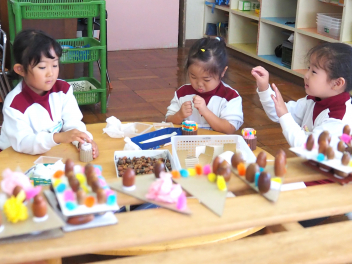 秋の自然物を遊びに取り入れて… ケーキづくり