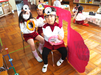 あおぐみさんは劇遊びが始まっていました 様々な役を表現していく中で、その役のよさや楽しさに気付かせていきたいと思います。これからが楽しみですね